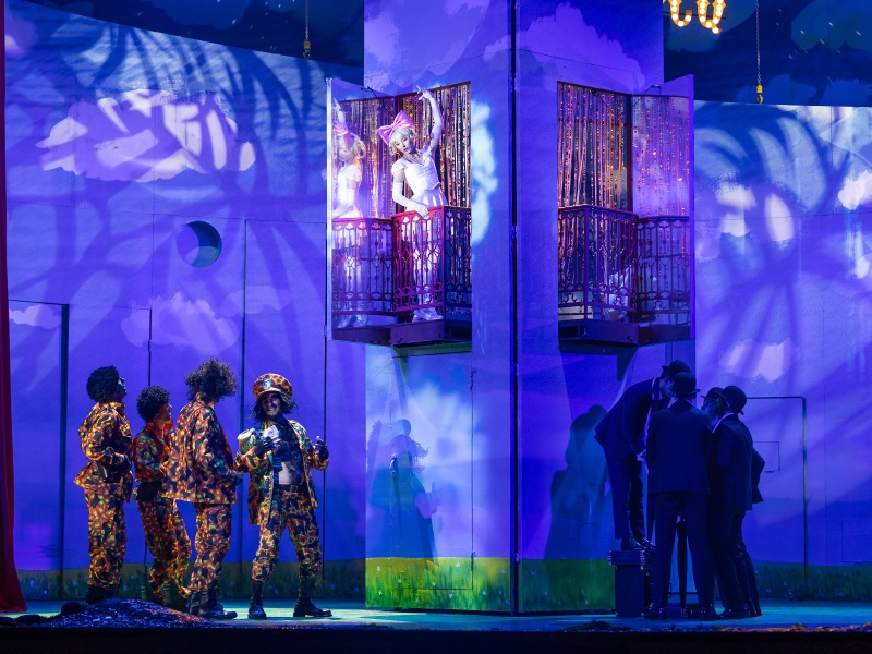 Первый акт – солнечный день сюрпризов, второй акт – звездная ночь жгучих страстей, плавно переходящая в романтическое утро окончательного выяснения отношений. Их атмосферу сотворил-осветил Евгений Виноградов, главный художник по свету театра «Ленком» и «Электротеатра».