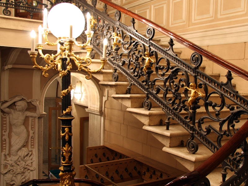 Building of theatreBuilding of the Theatre of Musical comedy has been constructed in 1799 – 1801 years conceivably according to the project of Russian architecture E.Sokolov. Construction was made on the land of prominent St.-Petersburg merchant I. Lazarev. New building became one of numerous profitable houses of his family. Almost after half of the century in 1842 – 1896 years according to the project of Italian architecture L. Vendramini the house was rebuilt, at that time the owner of the house was heiress of Lazarev, princess Urusova. In 1896 Grand duke Nikolay Nikolaevich, grandson of Nikolay I, had bought the house and afterwards presented it to his favourite - well-known actress of Alexandrinsky Theatre M. Pototzkaya. In all probability in this period at will of Grand duke interiors of first floor were anew trimmed, and became splendid palace apartments. Soon afterwards conflagration of 1910 year building was passed to treasury, and then was bought by private entrepreneur I. Piltzov. In accordance with the project of Russian engineers I. Balbashevsky and A. Maksimov inner apartments of the building were reconstructed for presenting theatre productions. Interiors of theatre, cozy and elegant, bear marks of very different architecture styles, that is why they are eclectic in astonishing way. Well-known in whole city three-flights stairs, reception-rooms, lobbies with quaint patterns of modelling, dissemination of painting and bronze are evidence of refinement of rococo style. In decoration of lobby placed over entrance to the theatre could be seen influence of different periods. Here elements of style of Italian Renaissance prevail. Architecture is retained in primordial appearance, except just one lobby that was specially rebuilt as a grotto, which was stylish tendency in the beginning of XX century. Walls of this hall were faced with raw masonry, in which cracks were hidden electric light bulbs; and in small ponds placed in the corners of grotto water flowed. Sometimes in theatre came people who were not interested in theatre at all, they were just curious – they wanted to see the luxurious stairs and to visit grotto. In architecture of the hall – one of the most early and few in number Petersburg interiors of public purpose of the beginning of XX century – it’s possible to see the influence of Russian late classicism. Hall differs from vivid theatre foyers by accented monumentality, plane angles of walls and discretion of architectural details; and elements of architecture borrowed from late classicism went well together with forms corresponding with engineer possibilities of that time. Most likely that unknown architect who created audience hall of the theatre was a represent of «streamlined neoclassicism». |