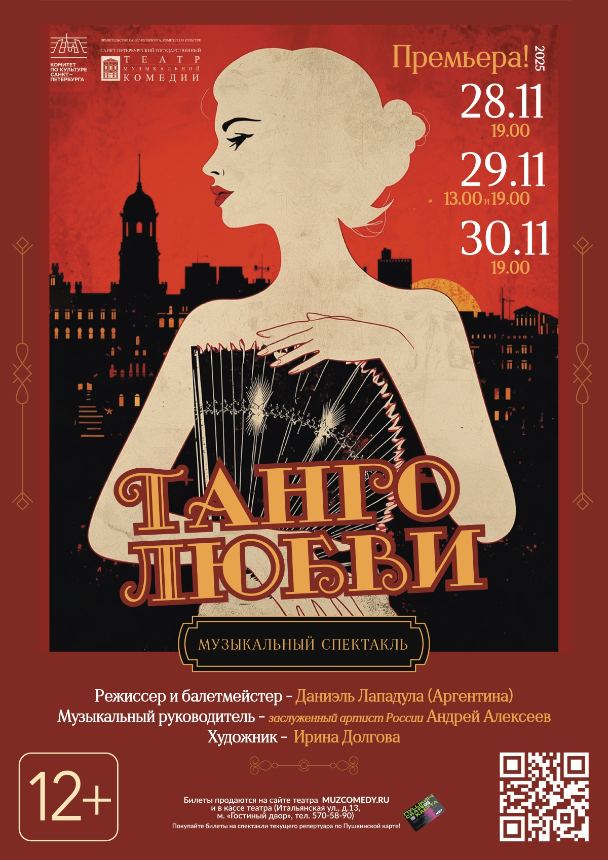 Раскрасить позднюю петербургскую осень страстным танго? «А это возможно?» – подумаете вы. «Да!» – отвечает Театр музыкальной комедии. 28, 29, 30 ноября на основной сцене – «Танго любви» в постановке, которую осуществит знаменитый аргентинский танцор и хореограф Даниэль Лападула.