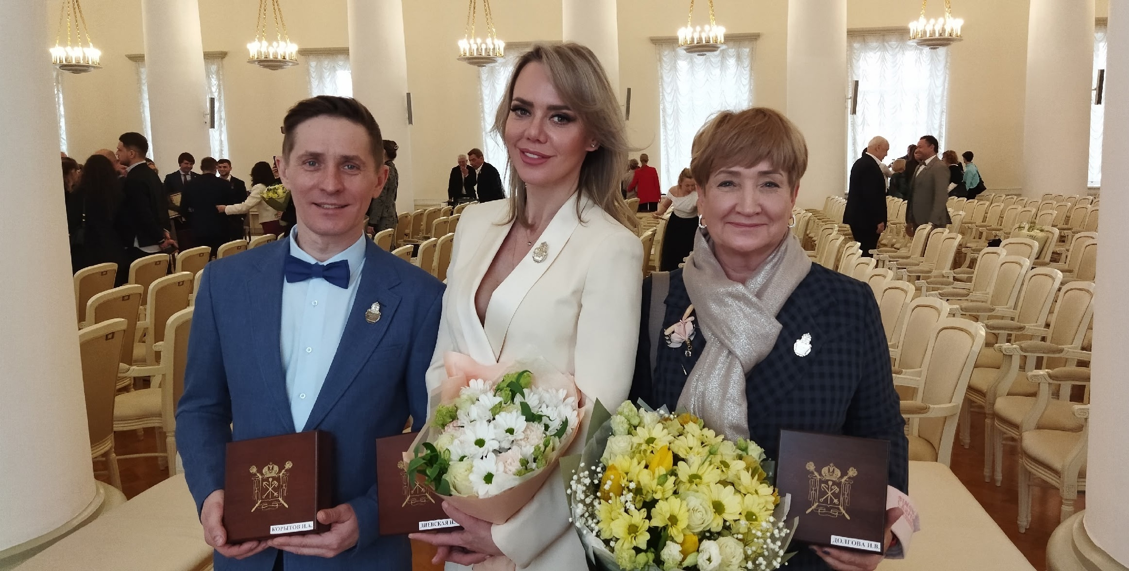 Сегодня в Смольном состоялась торжественная церемония вручения государственных наград Санкт-Петербурга. Звания «Заслуженный артист Санкт-Петербурга» удостоены солист Иван Корытов и артистка мюзиклов театра Наталия Диевская. Звание «Заслуженный художник Санкт-Петербурга» присвоено главному художнику театра Ирине Долговой.